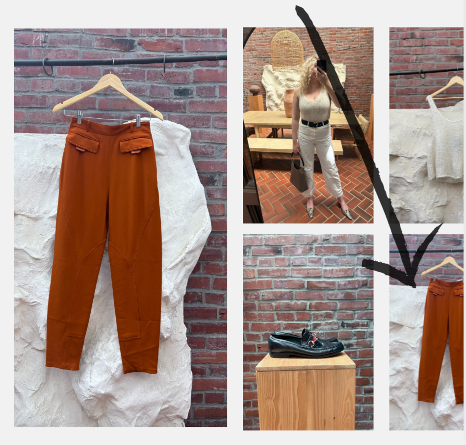 These vintage Hermes riding trousers in a deep burnt orange fit like a traditional size 2, are high waisted and have placket pocket details on the front.