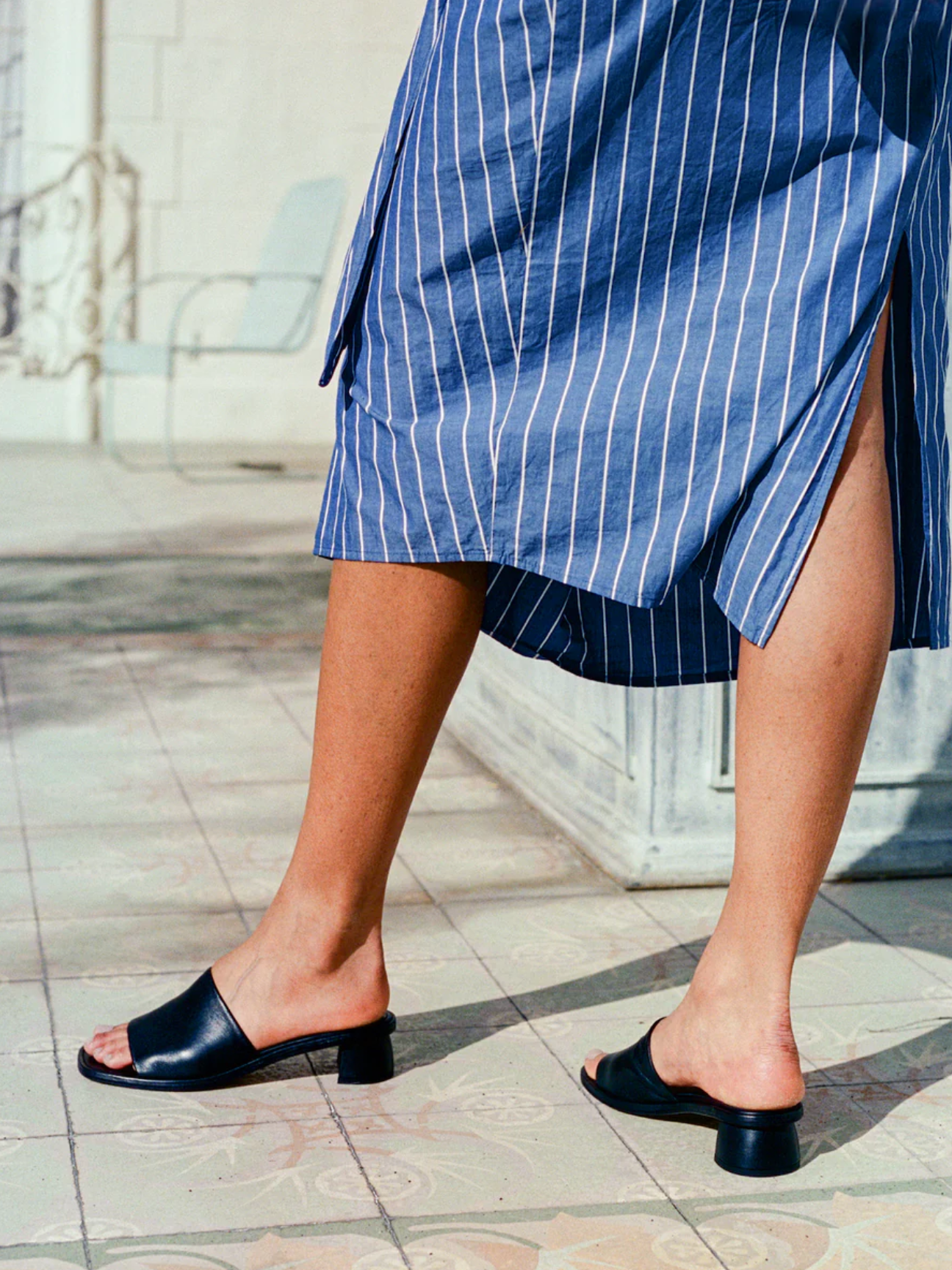Made in Spain, the Celia slide is a warm weather basic featuring a solid leather strap.