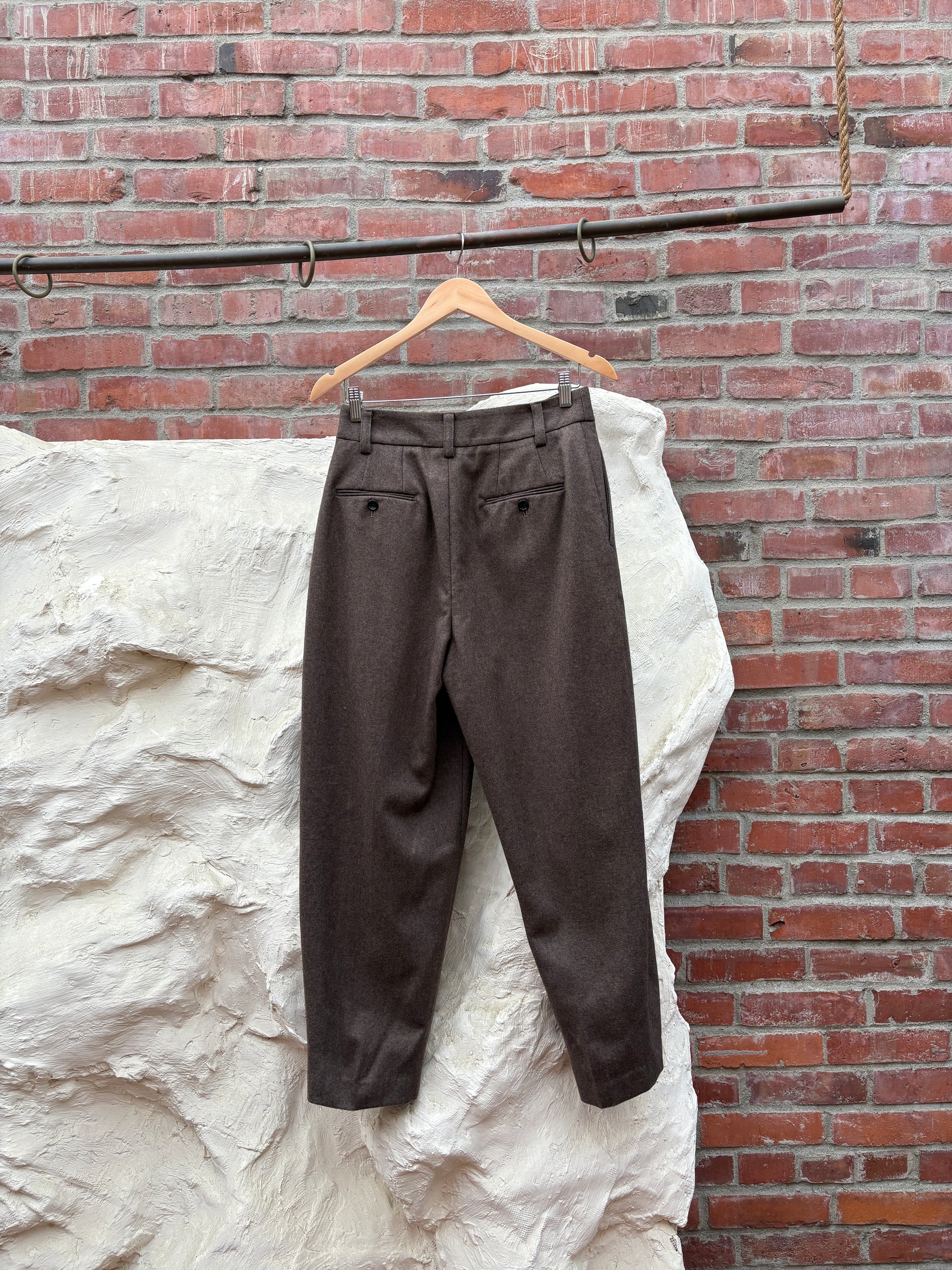 Espresso brown wool-blend with a soft brushed finish