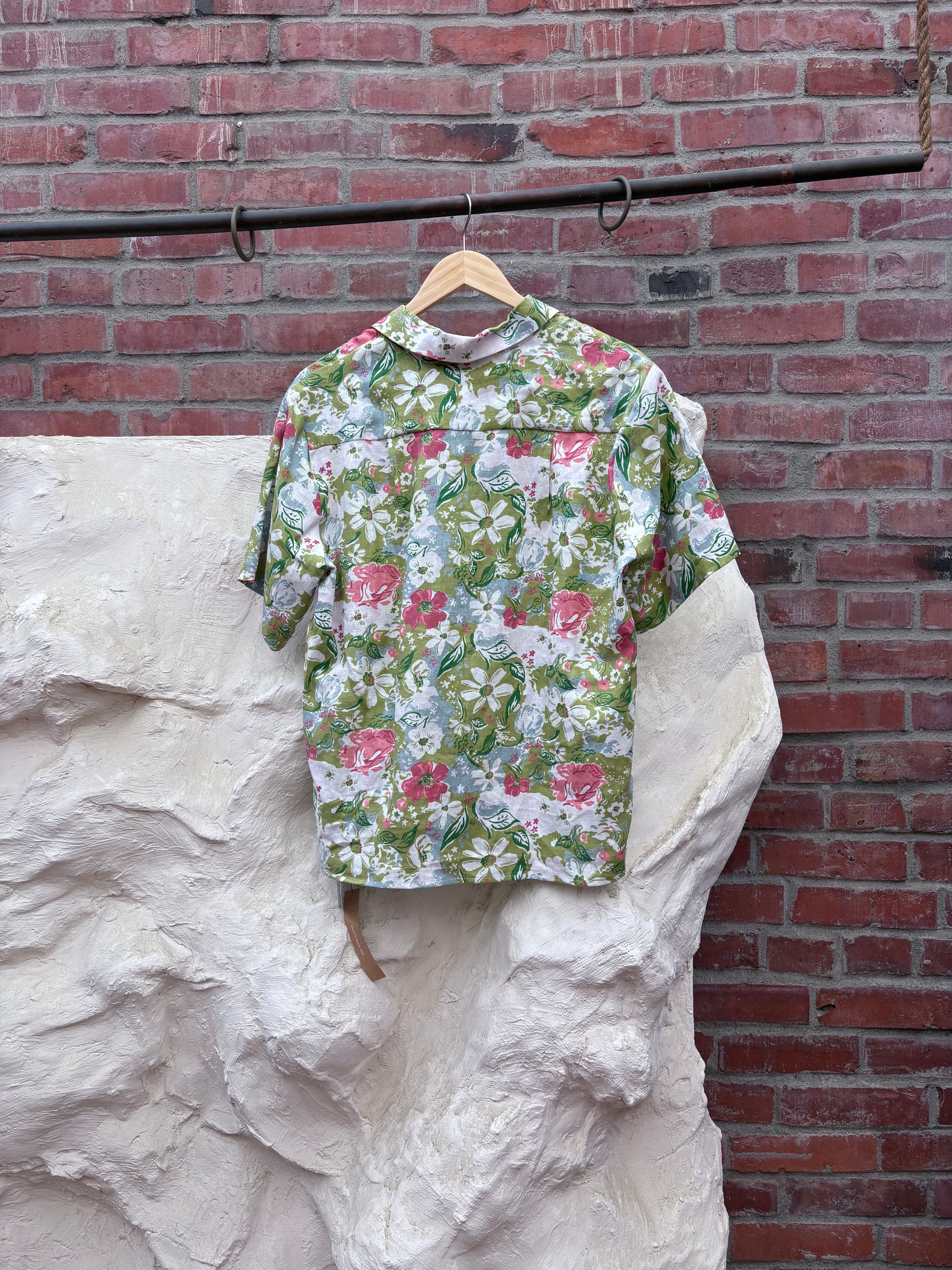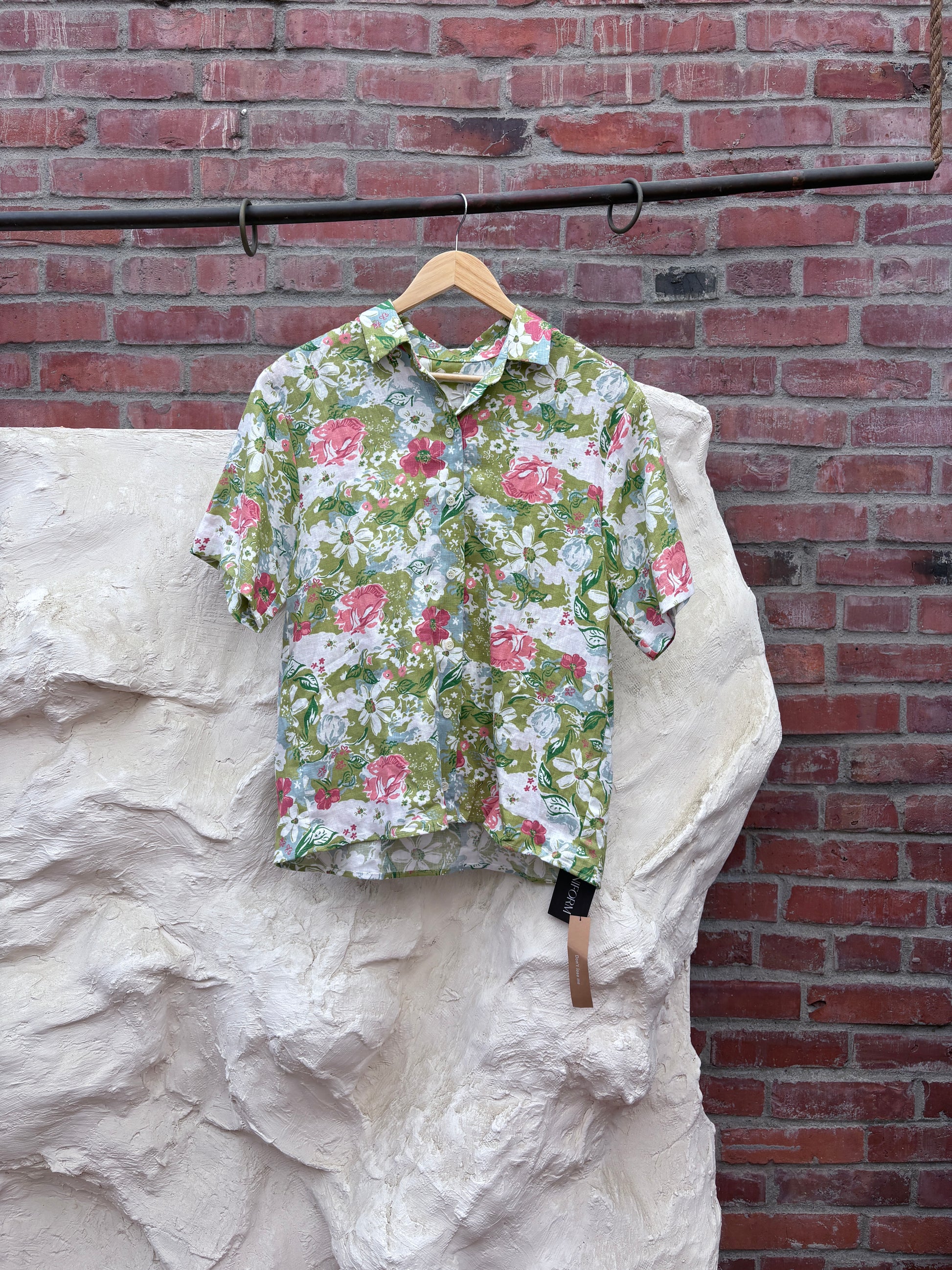 Reformation Linen Floral Print Button-Up Top